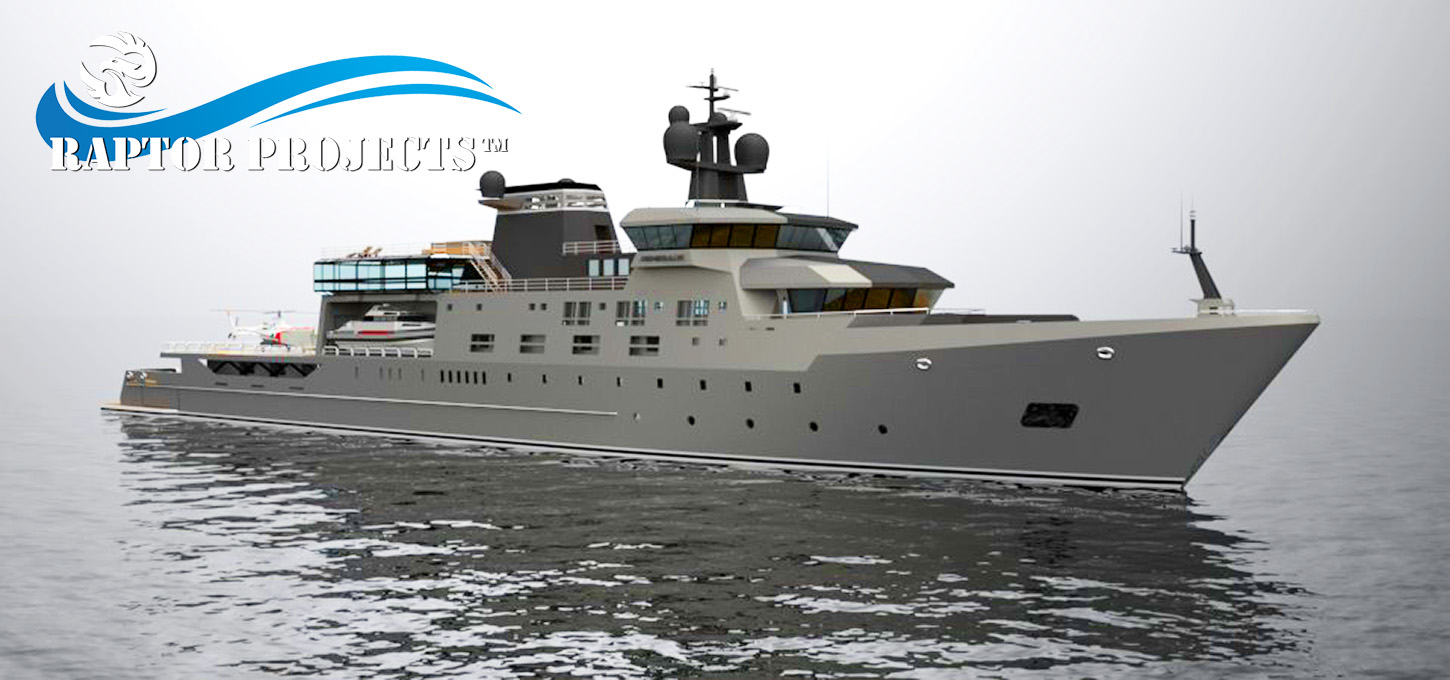 Project Grey offers crisp and powerful lines to charge through the worlds waters carrying up to 32 passengers, a multitude of marine and aviation toys, and yachting comfort – with high functionality purpose.